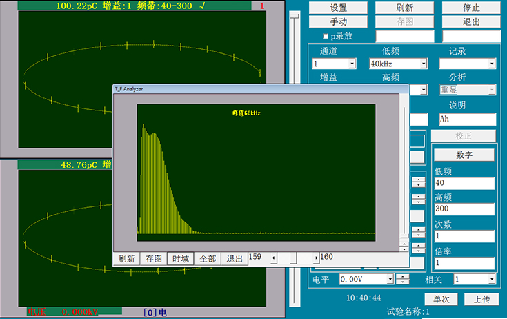 兩通道獨(dú)立采集數(shù)據(jù)(非通道轉(zhuǎn)換式),同步信號(hào)采樣,兩個(gè)窗口單獨(dú)顯示局放測量結(jié)果。